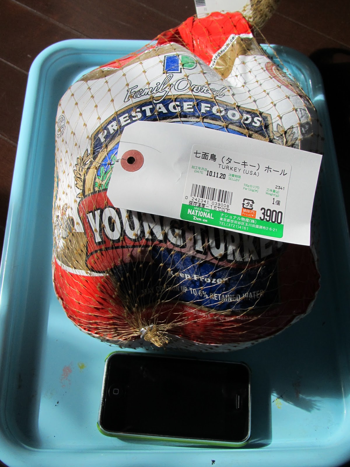 A 10 pound turkey might seem tiny to those of you in the west, but, in Japan it is pretty big as we don't usually have huge ovens like American homes do. Most Japanese dwellings don't even have an oven. This one is just right for our oven.
